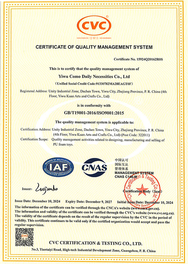 Yiwu Como Daily Necessities Co., Ltd. has occupied an important position in the handicraft simulation toy and decompression toy market with its excellent product quality, innovative design concept and good market reputation. The products are not only popular in the domestic market, but also exported to many countries and regions overseas, and are deeply loved and praised by consumers around the wo